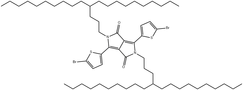 中文名稱:3,6-雙(5-溴噻吩-2-基)-2,5-雙(4-癸基十四烷基)-2,5-二氫吡咯 并[3,4-c]吡咯-1,4-二酮